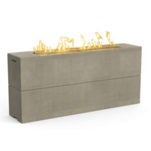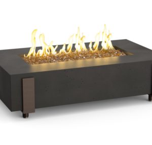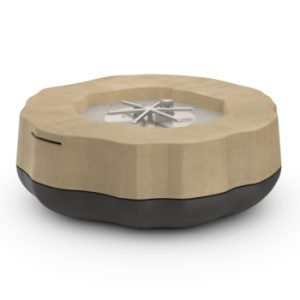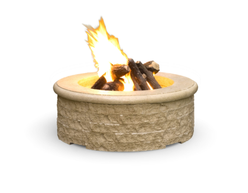 Chiseled fire pit by American Fyre Designs with textured GFRC concrete finish.