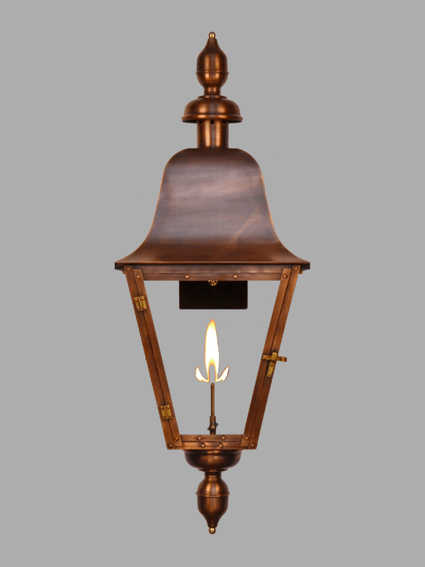 Hand-crafted copper gas lantern in the Birmingham style by Coppersmith.