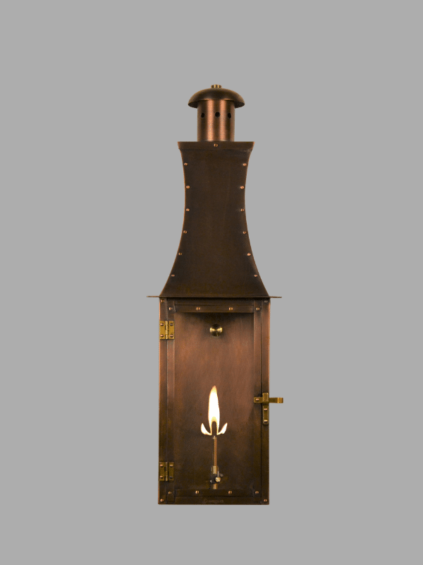 Hand-crafted copper gas lantern in the French Chelsea style by Coppersmith.