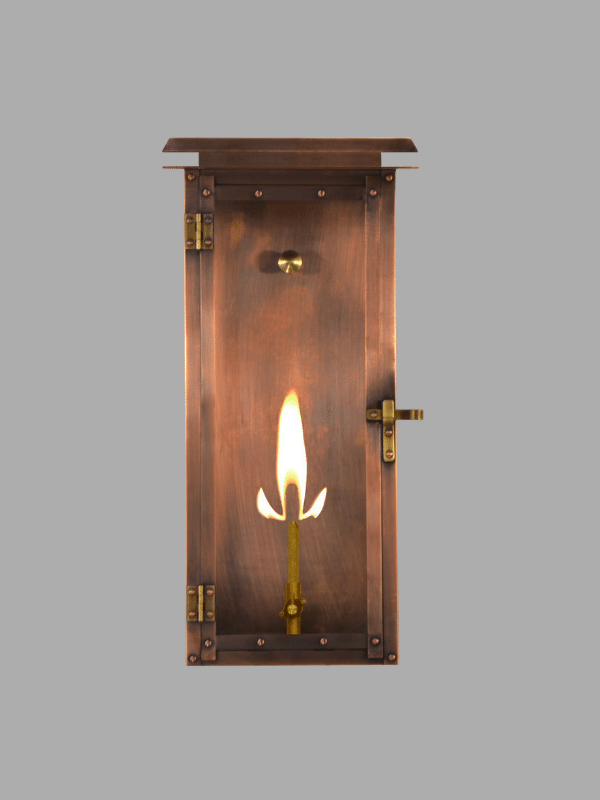 Hand-crafted copper gas lantern in the French Houston style by Coppersmith.