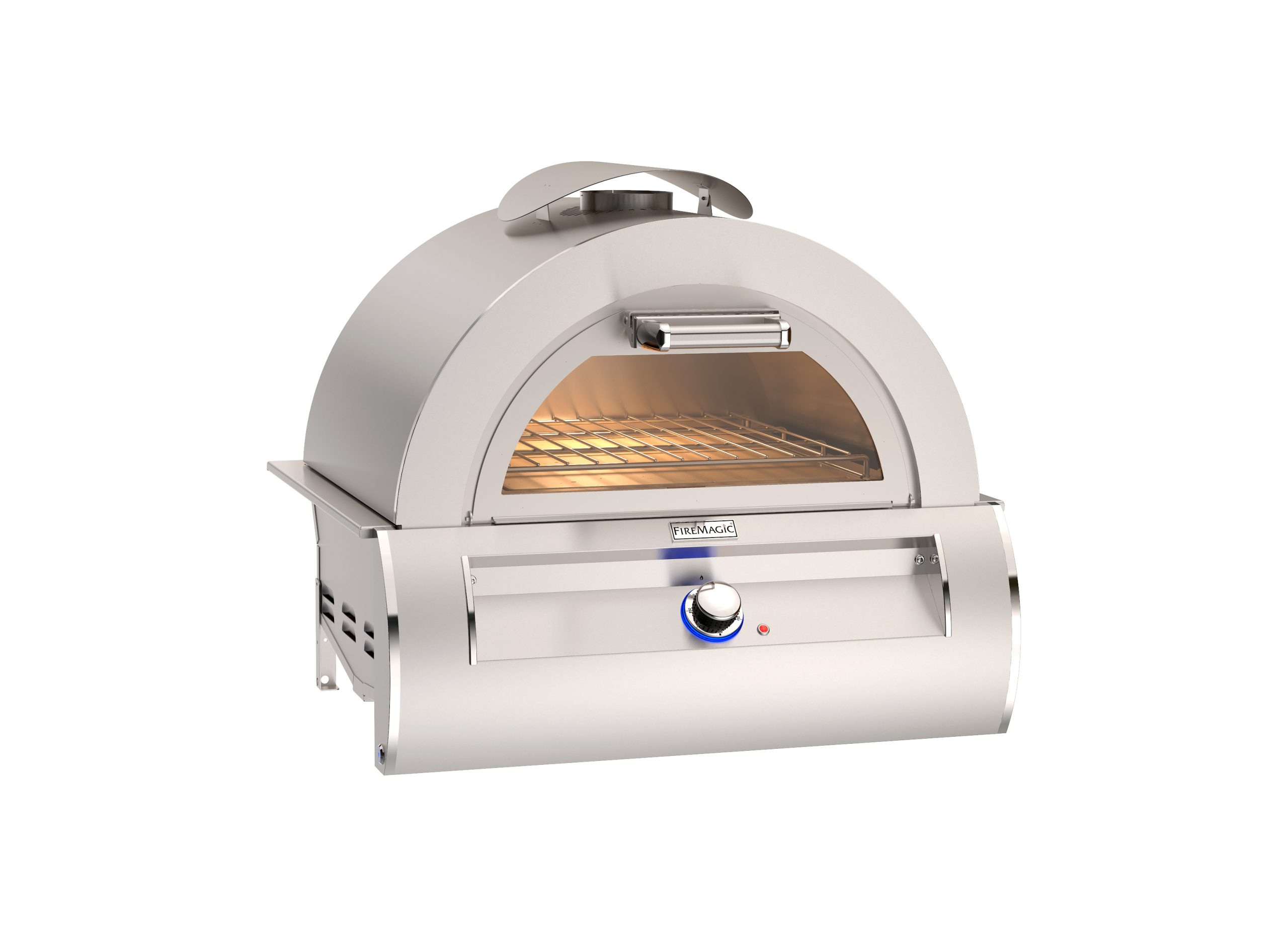 Built-in pizza oven from Fire Magic with high-temperature capability for authentic pizza cooking.