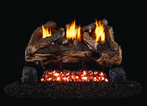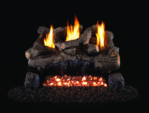 Evening Fyre vent-free gas log set by Real Fyre with G18 burner system available in charred and split oak styles.