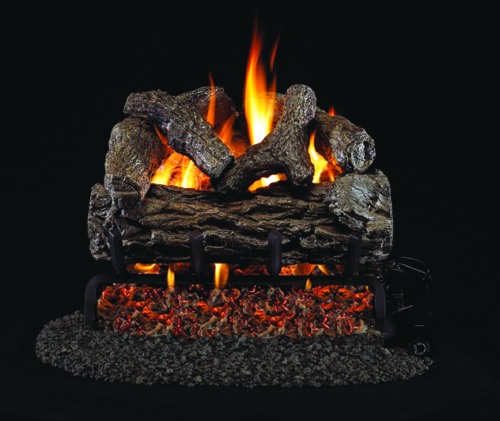 Golden Oak vented gas log set by Real Fyre available in classic and see-thru configurations.