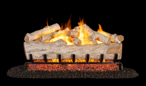 Mountain Birch vented gas log set by Real Fyre available in 24-inch and 36-inch sizes.