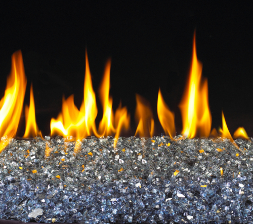 Reflective Fyre Glass by Real Fyre available in Black, Emerald, Azuria, Bronze, Caribbean Blue, Champagne, Gold, and Copper reflective finishes.