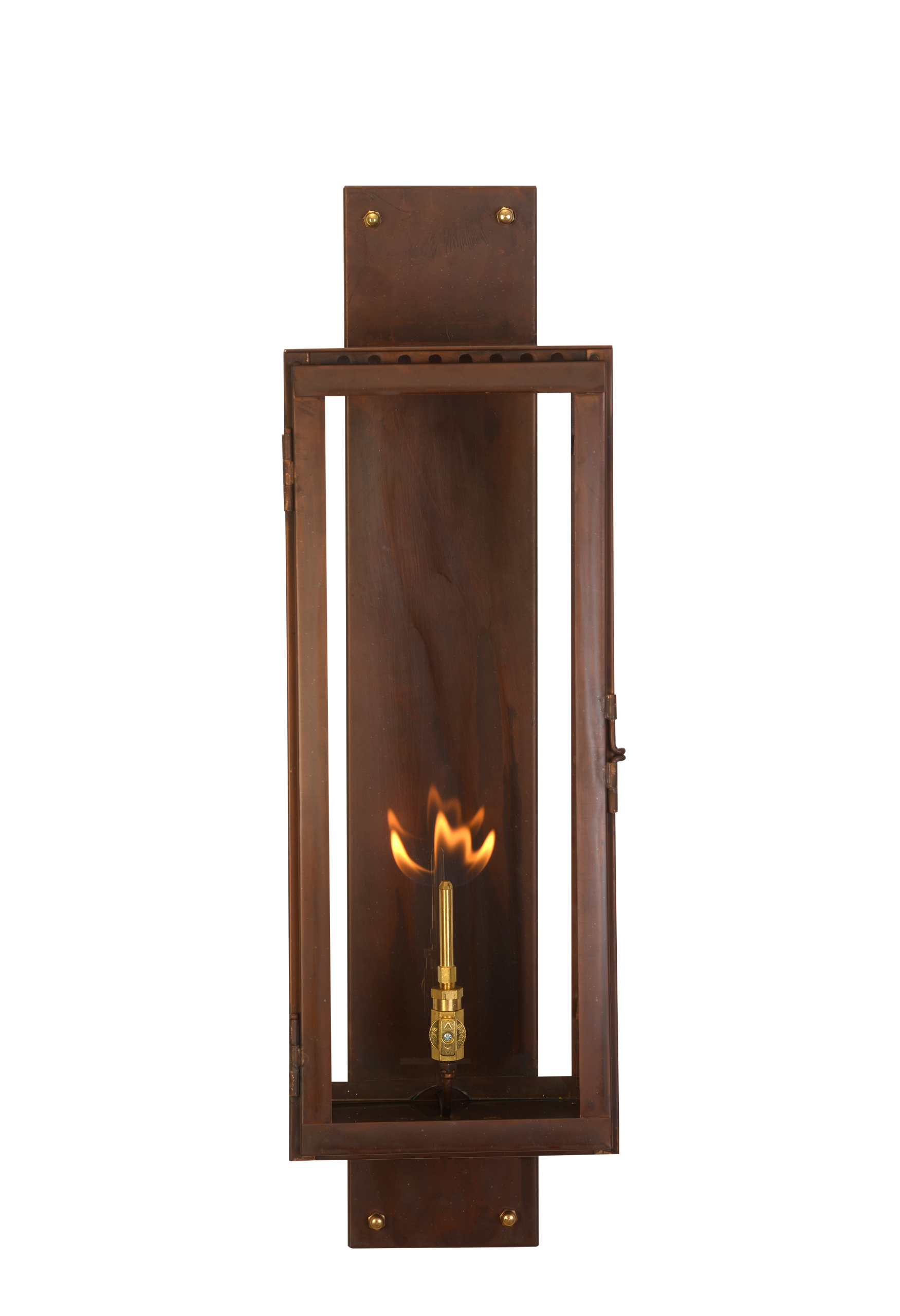 Hand-crafted copper gas lantern in the Fifth Avenue style by St. James Lighting.
