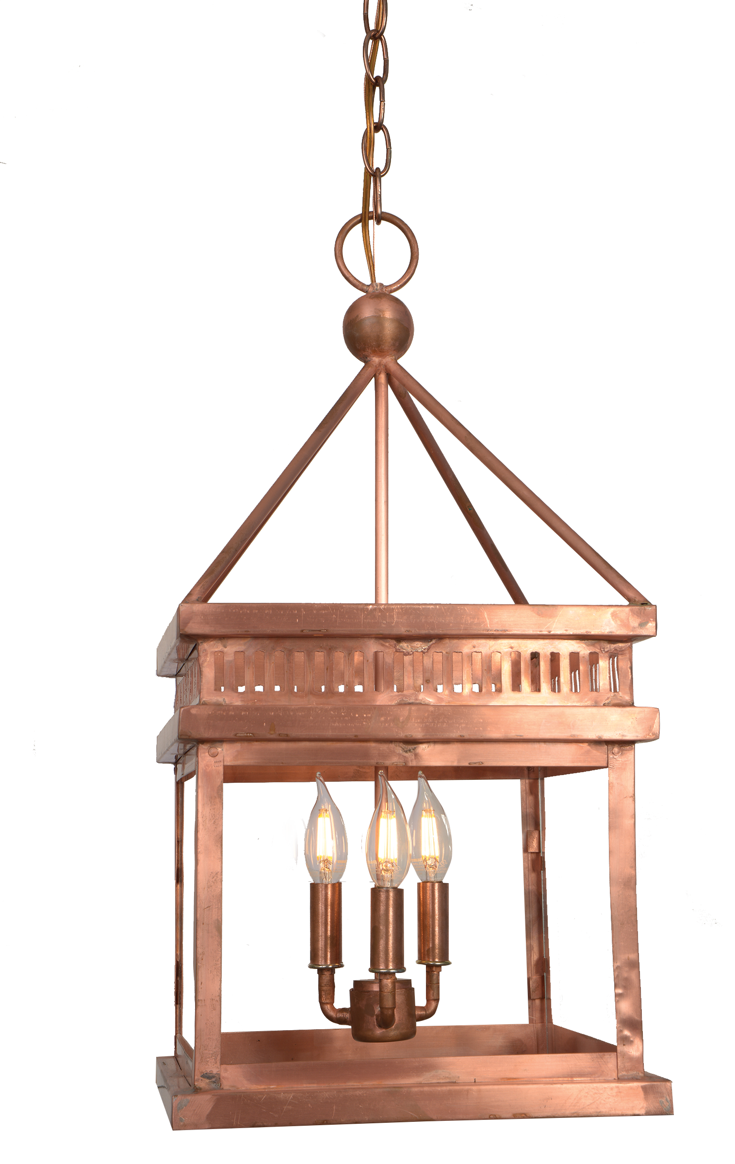 Hand-crafted copper chandelier in the Old Salt Run style by St. James Lighting.