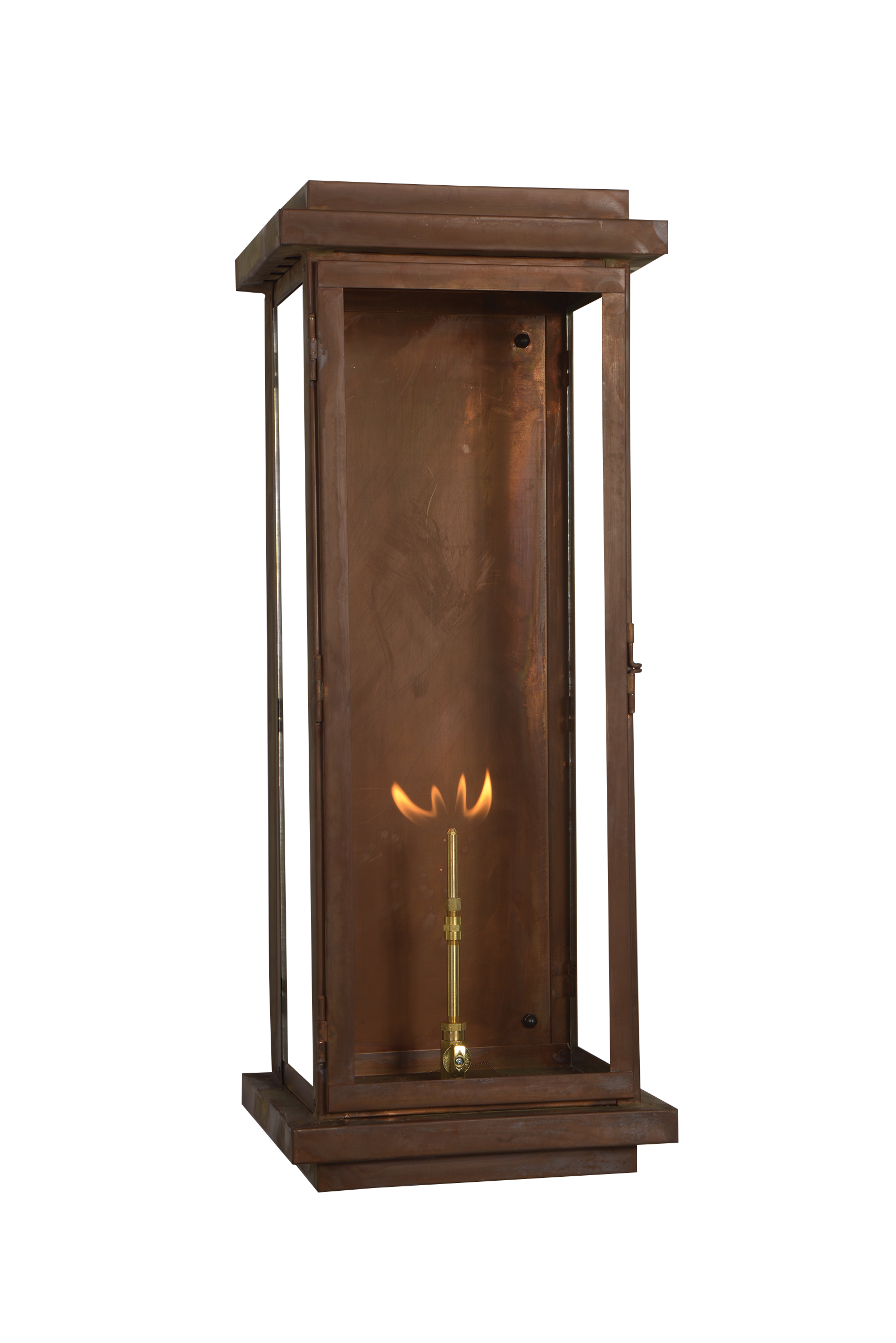 Hand-crafted copper gas lantern in the Winnipeg style by St. James Lighting.