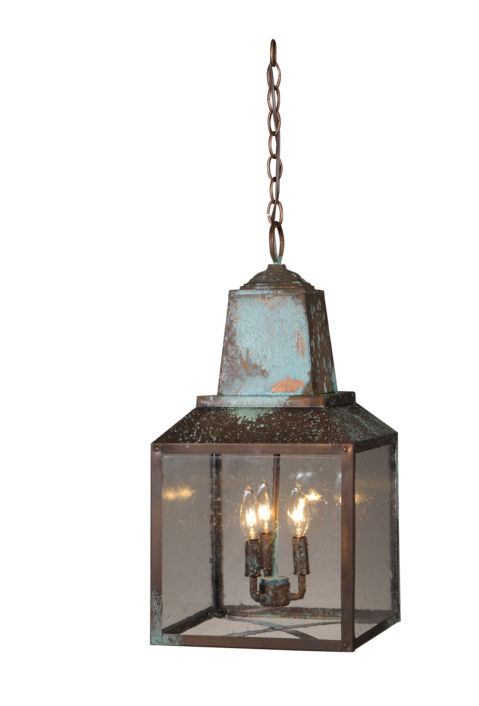 Hand-crafted copper chandelier in the Winnsboro style by St. James Lighting.